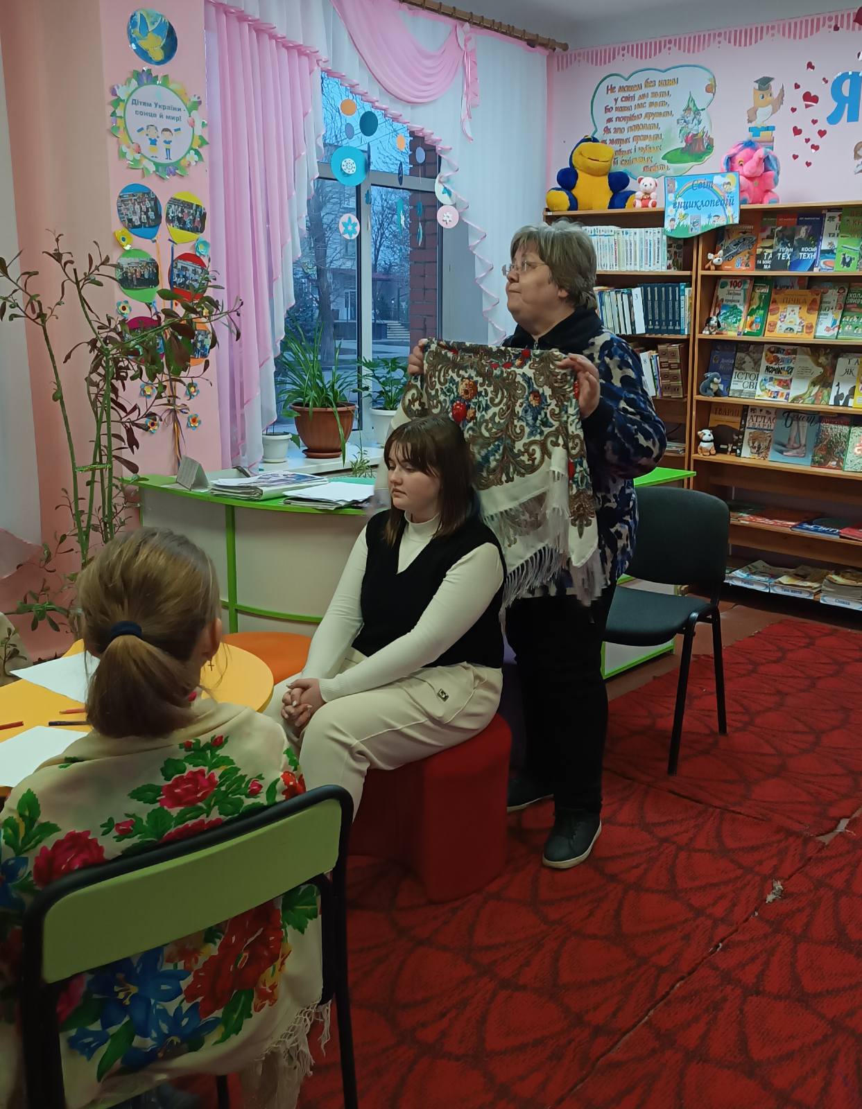 Працівники Решетилівської філії Полтавського ОЦЕВУМ та Решетилівської ЦМБ ім.О.М.Дмитренка провели спільний захід для гуртківців ОЦЕВУМ – годину духовності «Пов’яжу хустку, так робила мама, а їй бабуся в спадок передала».